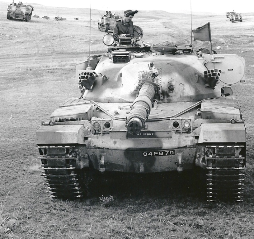 The Commanding Officer 2 R IRISH commands from a Chieftan tank.