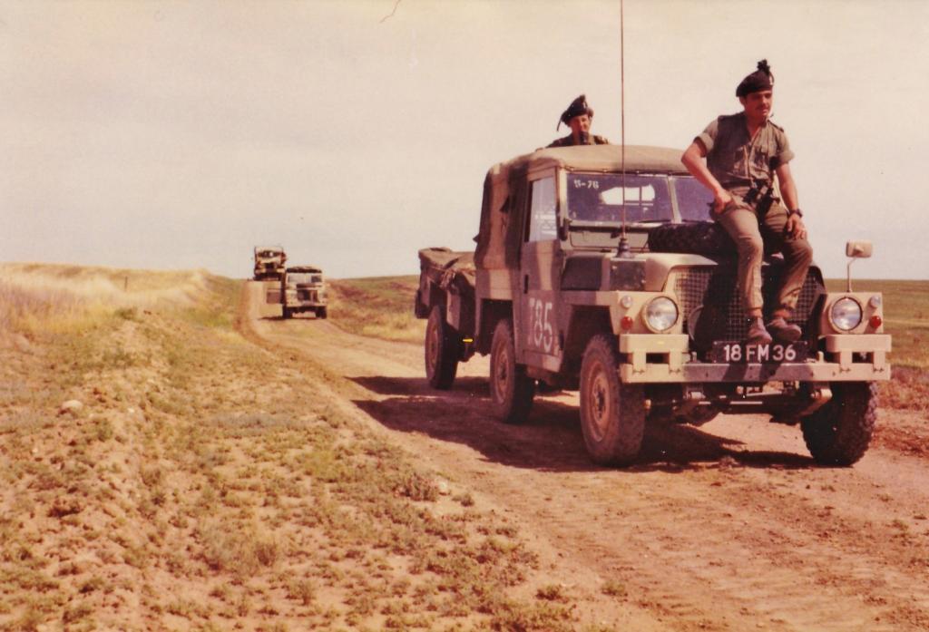 In June 1976, the 2nd Battalion The Royal Irish Rangers Battle Group, commanded by Lieutenant Colonel D G McCord MBE, deployed from West Germany to take part in Exercise MEDICINE MAN III at the British Army Training Unit Suffield (commonly referred to by its acronym BATUS) near Medicine Hat, Alberta, Canada. Also in the Battle Group were elements of the Blues and Royals, Queens Royal Irish Hussars, 2nd Field Regiment Royal Artillery and supporting troops from The Corps of Royal Engineers and The Royal Corps of Transport.
