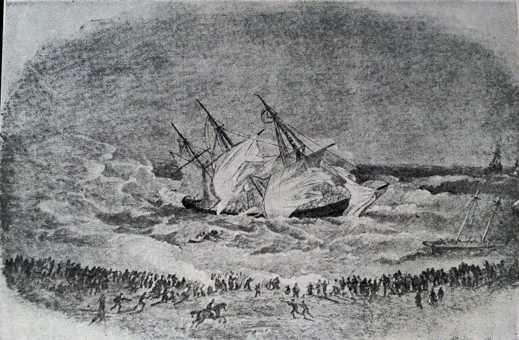 Painting depicting the Charlotte as she founders on the reef.