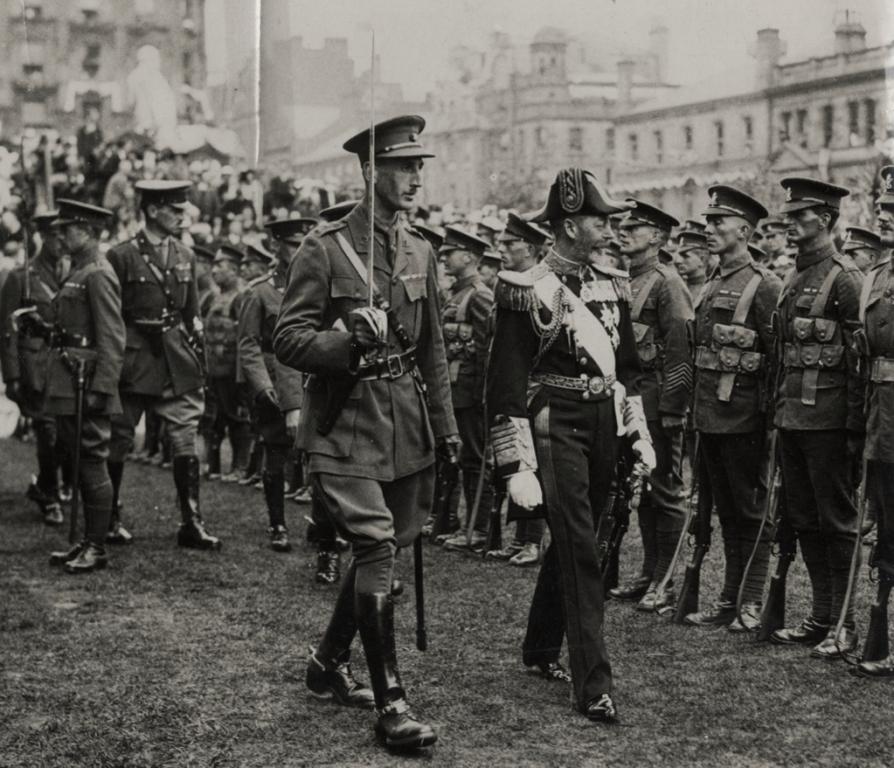 | King George V inspecting the Guard of Honour mounted by the 1st Battalion The Royal Irish Rifles. |