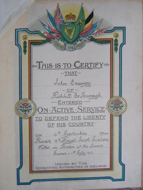 North of the Ancre, the 9th Battalion The Royal Irish Fusiliers (9th Faughs) and the 12th Battalion The Royal Irish Rifles (12 RIR) were to advance to their objective in the left section - Beaucourt railway station and the trenches immediately beyond it.