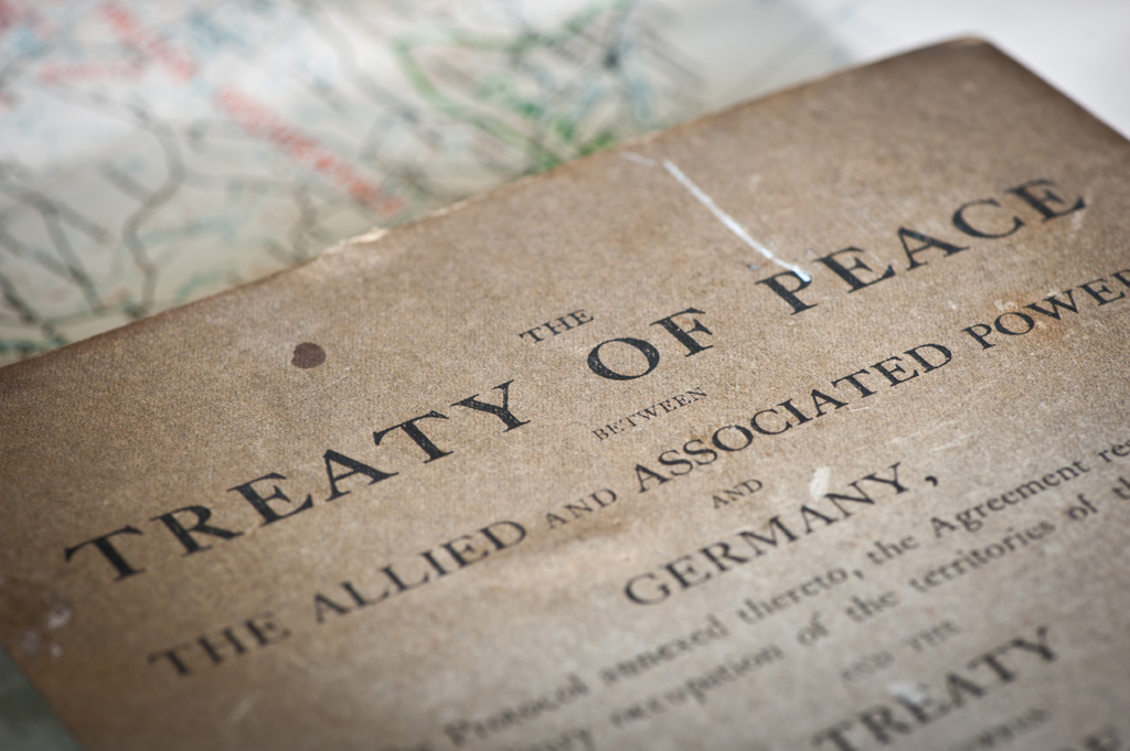 The official ending of the First World War was not marked by a cessation of fighting or by the Armistice of 11 November 1918. It took another six months of negotiation between the Allied Powers to agree terms to be imposed on Germany. The Treaty of Versailles, between the Allied Powers and Germany, was eventually signed by Germany on 28 June 1919.