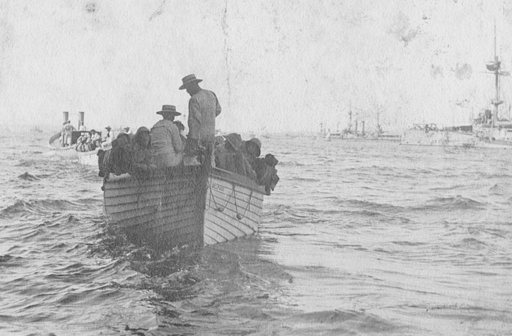 | 5th Battalion The Royal Irish Fusiliers, aboard 'Belfast', heading for C Beach, Suvla Bay |