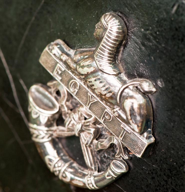 | Battle Honour 'EGYPT' (With The Sphinx) carried on the rear pouch of a Royal Irish Rifles Officer's cross belt |