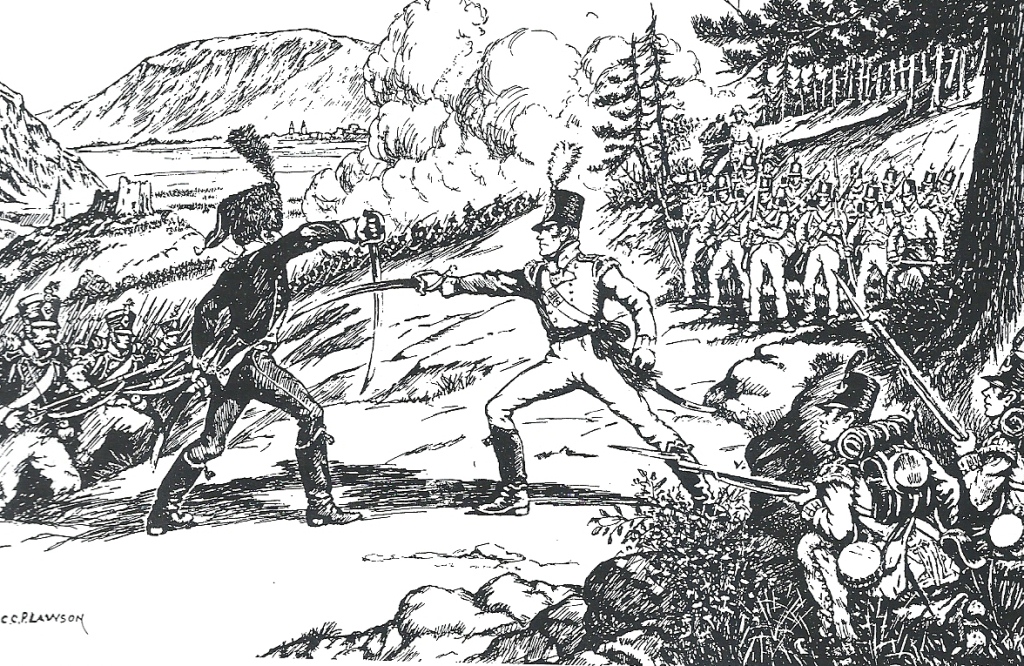 | Captain John Waldron accepting the invitation of a French officer to fight a duel at the opening of the Battle of Castalla. |