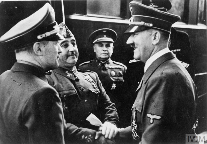 | Hitler meeting with General Francisco Franco (centre) at Hendaye, Southern France, October 1940. |